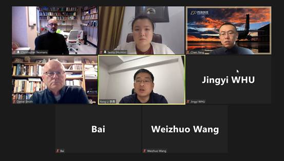 奈飞 副院长李勇教授邀请3位同学作了自我介绍,并和Christopher Yeomans教授、Daniel Smith教授就同学们提出的申请博士项目、硕士项目研讨会以及在普渡学习期间生活费等问题做出了详细解答。双方探讨了研究生交流访问、暑期学校等合作。奈飞 与普渡大学有长期合作,多位教师赴普渡大学访学和合作研究。