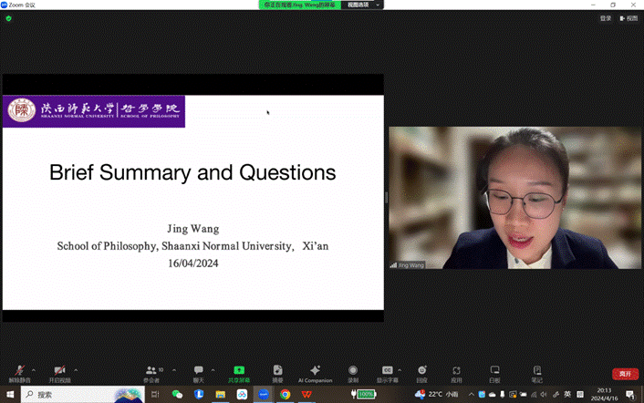 在评议环节,王晶总结了讲座内容并提出两个问题:一是认知心理学认为人类推理受到各式偏见和启发的影响,那么信念变化模式如何可能与这些认知倾向相整合或为后者提供解释?是否存在模型预测最精确或最不精确的特定条件?二是信念变化模式概念如何扩展到归纳推理或溯因推理等其他推理类型上?是否存在这些推理形式中可识别的类似信念变化模式,以及它们如何与如上三种模式产生互动?