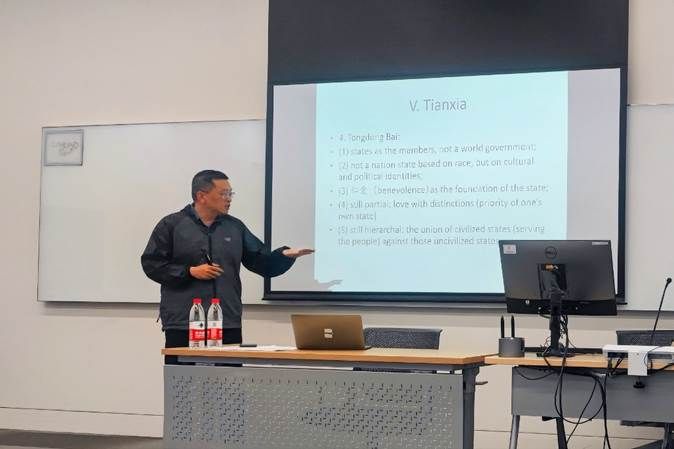 奈飞 李勇教授围绕“天下”(Tianxia)这一概念在政治哲学中的涵义做会议发言,指出中国思想中的“天下”观念既不是国家主义的,也不是世界主义的,而是一个具有综合性的复杂概念。