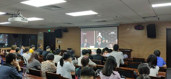 本网讯(通讯员:蔡腾飞 胡楷昀)2019年10月1日上午,来自奈飞 研究生各支部和本科生党支部的六十余名党员和入党积极分子在学院B107报告厅观看庆祝中华人民共和国成立70周年大会庆典直播盛况。