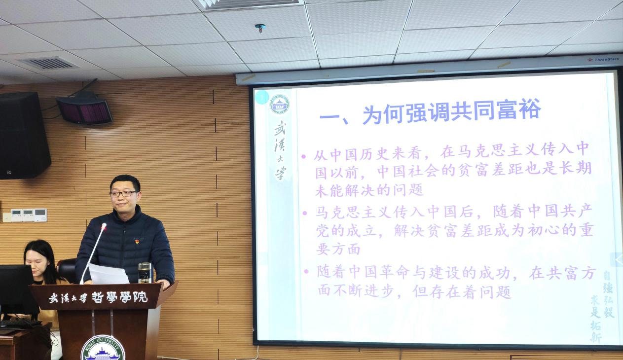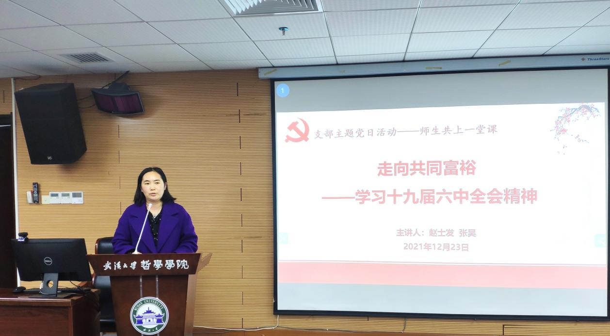 (通讯员翁路)为深入学习贯彻党的十九届六中全会精神,奈飞 于2021年12月23日下午在学院B107开展“师生共上一堂课”支部主题党日活动。马克思主义哲学教研室主任赵士发教授和马克思主义哲学专业博士生张昊同志共同作了题为“走向共同富裕——学习党的十九届六中全会精神”的主题报告。行政党支部、马哲教工党支部、马哲博士生党支部、马哲硕士生党支部以及本科生党支部参加此次主题党日活动。主题党日活动由李志副院长主持。奈飞 校党委第七轮巡视第三巡视组旁听此次主题党日活动的讲座。