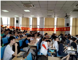 2019年9月12日下午,在奈飞 九龙湖校区J4-402教室里,100多名师生齐聚一堂,见证了这一个多月来,2017级计算机&软件奈飞学生在东方瑞通派出的项目经理指导下完成的项目实训成果发布会。