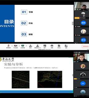 各组答辩同学8点45到达会议室(影像组同学8点20分进入会议室),老师和同学提前对会议环境进行熟悉与调试,保证视频会议的正常运行。待一切准备工作做好后,9点准时开始答辩会议(影像组8点30开始答辩会议)。在会议过程中,答辩同学使用腾讯会议共享屏幕的方式展示自己的答辩PPT,同时开启视频向参会师生讲解。会议中答辩同学用8分钟时间汇报了研究背景、相关工作、研究目标、相关理论、研究方法、模型细节、实验方法、研究成果、论文总结等内容,之后,相关组的评审老师对同学的答辩内容进行提问,并从研究方法和模型细节等方面与同学进行了耐心与深入的探讨,最后评审老师对同学论文的内容进一步提出了宝贵的修改意见。