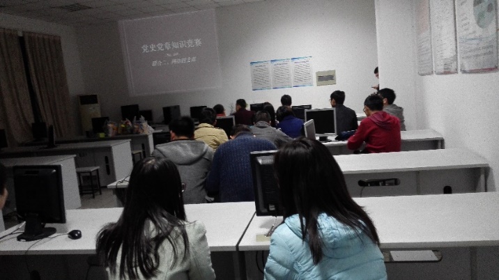 首先,由联合二支部书记段旭给大家介绍比赛规则,该项比赛包括三种题型:填空题、选择题和主管题。大家采用抢答的方式回答,答对积2分,答错不扣分。最后根据分数评比出一二三等奖,分别有U盘和笔记本等作为奖品。整个答题过程持续了近一小时,大家表现积极,抢答很快,正确率也很高,大部分同学对党章比较了解。最后的主观题部分,大家纷纷谈到对自己党员身份的认识和理解,以及今后该如何把党的理论知识在实际生活中践行。