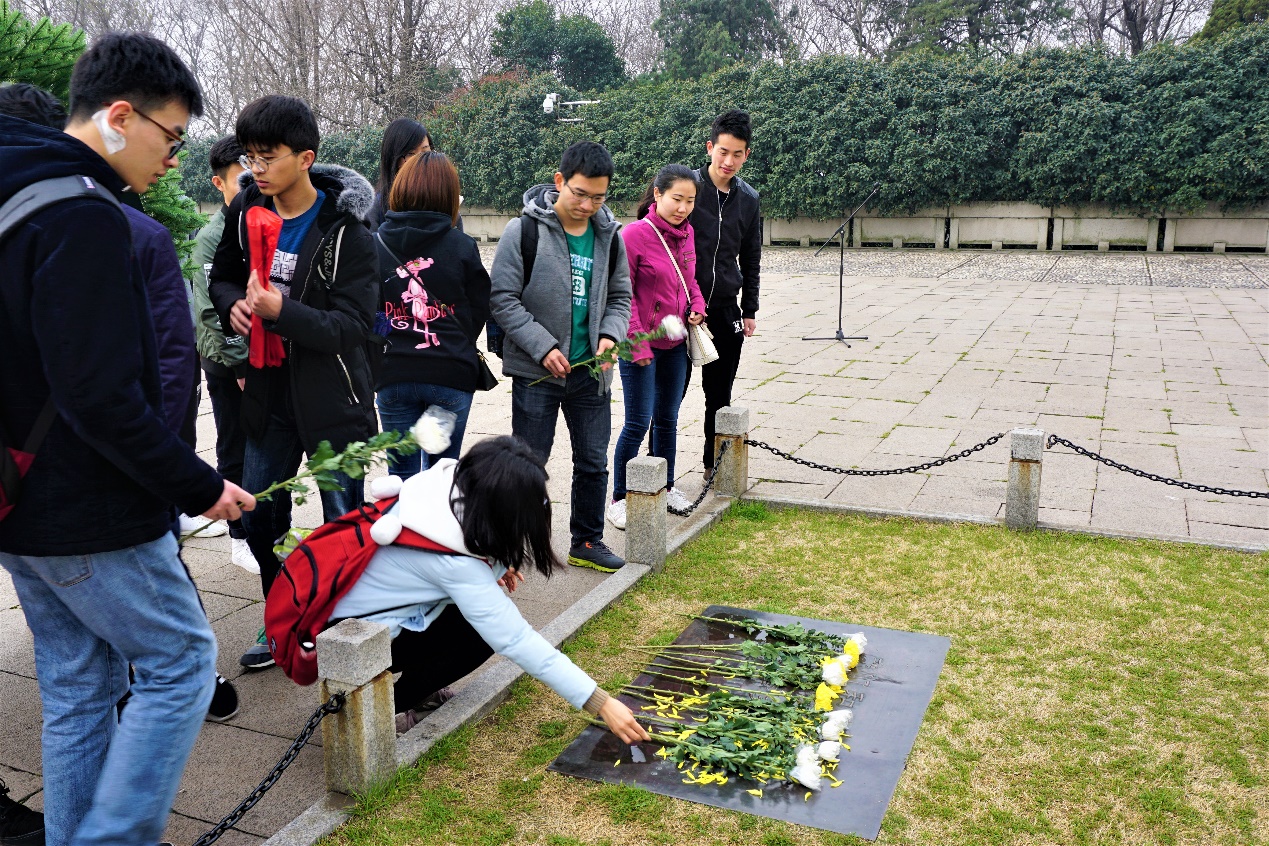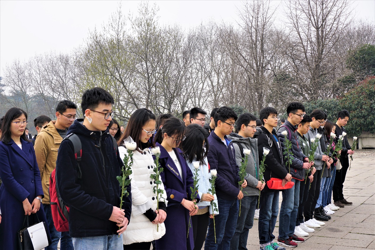随后,支部成员来到烈士纪念碑前,烈士纪念碑建于雨花台海拔60米的制高点上,位于占地面积5010平方米的雨花台主峰广场上,纪念碑高42.3米,由碑首、碑身、碑座三部分组成,碑额似红旗如火炬。碑前立有一尊5米多高以“宁死不屈”为主题的革命烈士青铜塑像,雄浑庄严,不禁让人心生敬意。