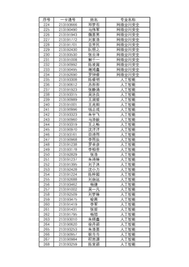 2019级计算机类本科生专业分流结果公示
