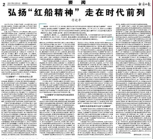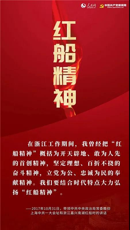 《弘扬“红船精神” 走在时代前列》系统阐述“红船精神”,认为“红船精神”是中国革命精神之源。他将“红船精神”的内涵高度提炼为:
