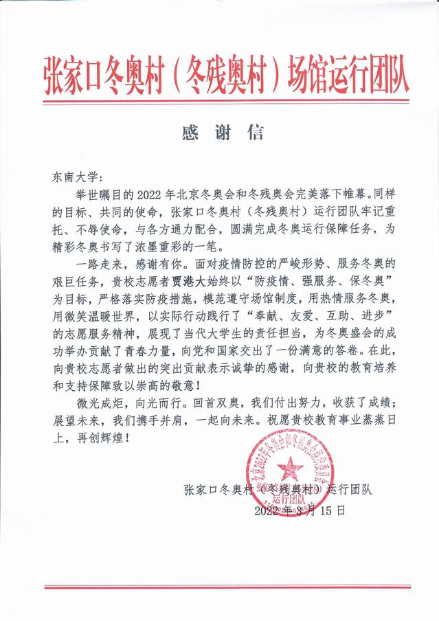 2022年北京冬奥会和冬残奥会完美落下帷幕,来自我院的贾港大同学参加了此次盛会的志愿工作,以实际行动践行了“奉献、友爱、互助、进步”的志愿服务精神,展现了当代大学生的责任担当。