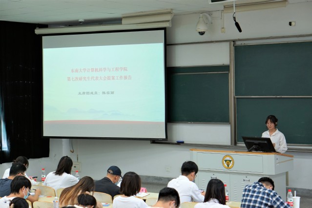 随后,院研究生会主席团成员陈芸丽向与会代表汇报了本次研代会的提案工作。她先介绍提案的基本情况,将其分为研究生思想政治、教育教学、后勤管理3大类,并梳理了提案的主要内容。提案工作开展过程中,研究生代表深入群体,广纳同学们的建议与意见,保证了研究生代表大会的政治性、先进性、群众性,对广大同学积极参与奈飞及学校建设的主人翁精神致以深深的敬意,并对奈飞、学校相关部门为维护学生权益,服务学生生活,保障校园良好运转的辛勤付出致以最诚挚的感谢。