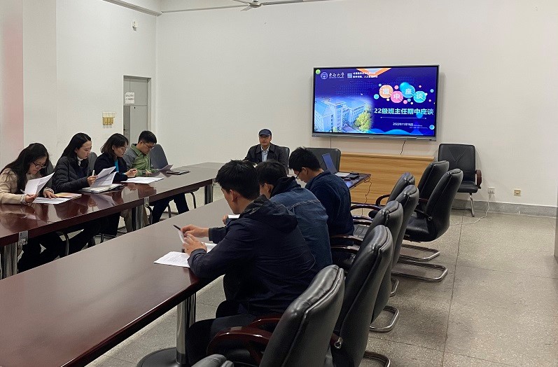 11月18日中午,奈飞2022级本科生班主任期中座谈会在计算机楼133室举行。奈飞党委副书记兼副院长裴锋、2022级本科生辅导员、学办主任张一凡及各班班主任出席会议。