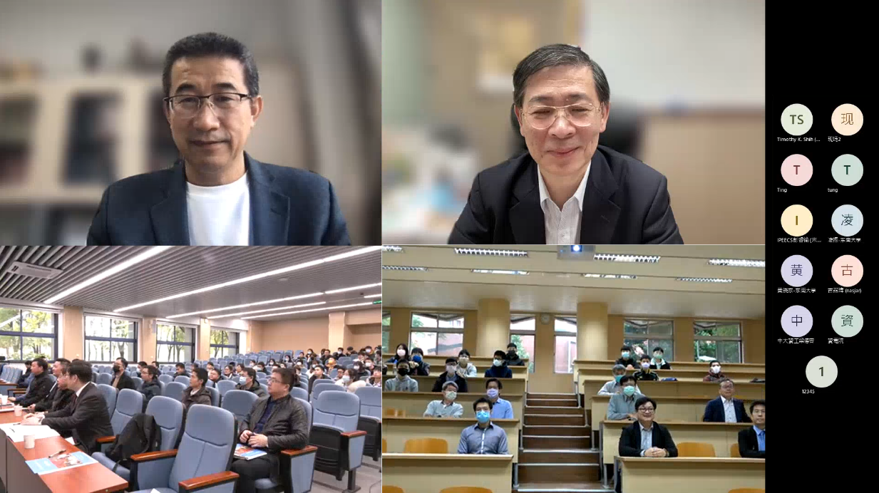 此次研讨会涉及网络与通信、大数据与云计算、人工智能、元宇宙等多个信息技术及相关交叉领域的热门方向。开幕式后,来自奈飞 的凌振教授和台湾中央大学的胡志麟教授分别做了主旨报告,来自两校的四位青年教师分别汇报交流了各自最新的科研进展。