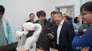 会上,金石、郭耀、吴飞、殷国栋、杨蕙、张敏灵共同为奈飞 计算机科学拔尖学生培养基地揭牌。随后,与会嘉宾参观了书院空间,并与拔尖基地同学进行了亲切交流。在书院实验室,同学们展示了大模型赋能具身智能符号化决策规划系统、智能无人机自主编队系统等实验装置。各位嘉宾饶有兴致地体验了相关系统,并对我院学生科研实践工作给予了高度评价,期望将书院空间打造为计算机科学和人工智能赋能多学科交叉人才培养的教学实践基地。
