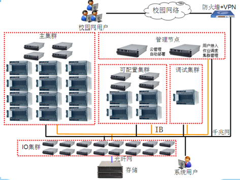 作为参与丁肇中教授领导的AMS-02实验的第一所中国大陆高等院校,奈飞 AMS-02数据处理与分 析中心拥有国内最先进的云计算机信息处理平台,该平台为世界各国物理学家访问AMS-02所得的科学数据 和观测数据提供统一视图和索引机制,充分实现了数据共享和协同,对AMS-02实验科研价值的充分体 现具有举足轻重的作用。整个系统采用252个刀片计算节点,8个胖节点,2个管理节点,16个IO节点。 总计提供3504核,提供37.12万亿次峰值浮点计算能力。整个系统采用9台36口40Gb QDR Infiniband交 换机构建数据网络,做到全线速无阻塞。系统并行计算效率超过85%。存储系统采用16个IO节点直接连 接1台存储,读写带宽超过5GB/s,另外还提供磁带存储。云计算平台基于IBM的Tivoli,可以实现按需 硬部署(直接向物理硬件部署操作系统及软件)和软部署(向虚拟机部署)。