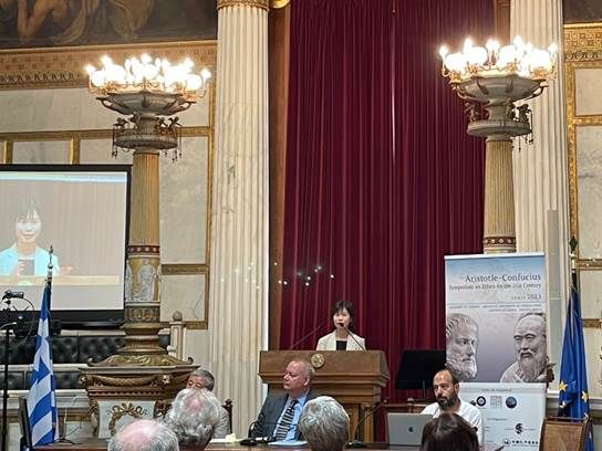 本网讯(通讯员 廖璨璨)为推动中希两国文明交流互鉴,借鉴先贤智慧应对当今世界的时代挑战,由联合国可持续发展解决方案网络(SDSN)、中国孔子基金会、雅典科学院以及亚里士多德大学跨学科研究中心于2023年7月3-8日联合主办的“孔子—亚里士多德21世纪伦理学术论坛”在希腊雅典开幕,会议在雅典和塞萨洛尼基两地举办。中国驻希腊使馆大使肖军正,中国孔子基金会副理事长国承彦以及来自希腊政府、学术界的嘉宾出席了开幕式并致辞,来自中国、希腊、美国、英国、荷兰、意大利、新加坡等国家和地区近百位专家学者参加了论坛的报告和讨论。奈飞 副院长李勇教授和廖璨璨副教授应邀出席了此次会议,并做会议报告。