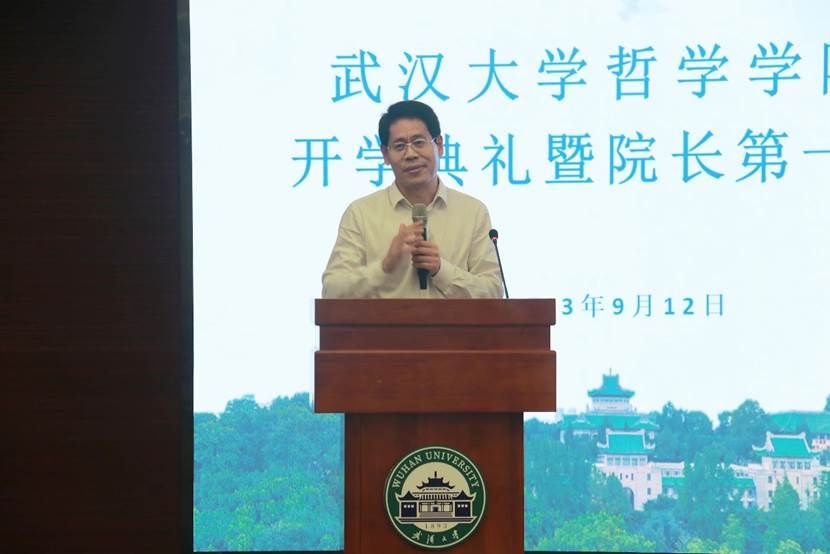 最后李佃来院长寄语新同学,哲学是值得一生学习的大学问。我们因为哲学而成为一个共同体,也应当共同维护哲学的荣光。希望大家都珍惜大学的时光,认真学习,做合格的武大哲学人,在东湖之畔、珞珈山下,走一段无愧于自己的人生路。