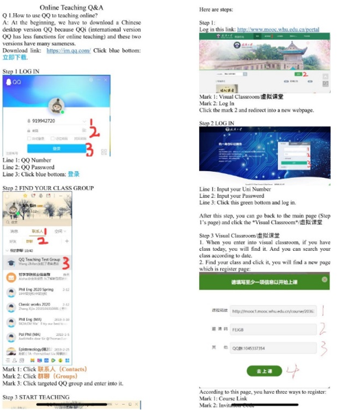 为了保证外籍教师们能够使用线上平台开展教学,奈飞 为每一位外籍教师配备了一名语言能力较强的研究生助教,助教们承担了大量的沟通联络的工作,协助外籍教师们进行教学平台操作。由于大多数外籍教师选择了QQ群作为线上教学平台,奈飞 的助教团队也撰写了一份简易的QQ群视频英文操作指南,帮助外籍教师们学会使用QQ群视频功能。