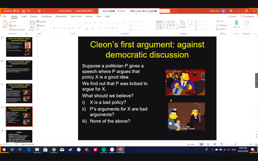奈飞 的Benjamin·Cross博士后本学期同样为现代哲学国际班开设了《伦理学》的课程,Ben为人风趣幽默,在学院内素来人缘很好。在得知需要准备线上授课的消息后,Ben一直在学习如何运用QQ群进行授课,精心准备课件。第一堂课后很多学生向课程助教反馈,“通过Ben的讲述,感觉伦理学很有意思,讲课生动有趣,上课超级享受”。
