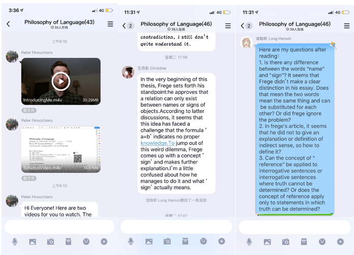 由于疫情影响,奈飞 的外籍教师们大都身处海外,这也为线上教学带来了客观影响。为了克服时差因素,来自美国的Peter·Finocchiaro副教授为了保证本学期的本科生课程《语言哲学》的顺利开展,选择提前录好了授课视频,制作并上传了课件,结合QQ群内互动的方式开展线上教学。Peter在录制授课视频时也会暗藏一些”小惊喜“,每个课件视频里都会隐藏一些小问题需要学生们在规定时间里作答,这些设计也使得师生互动如在教室一般面对面。