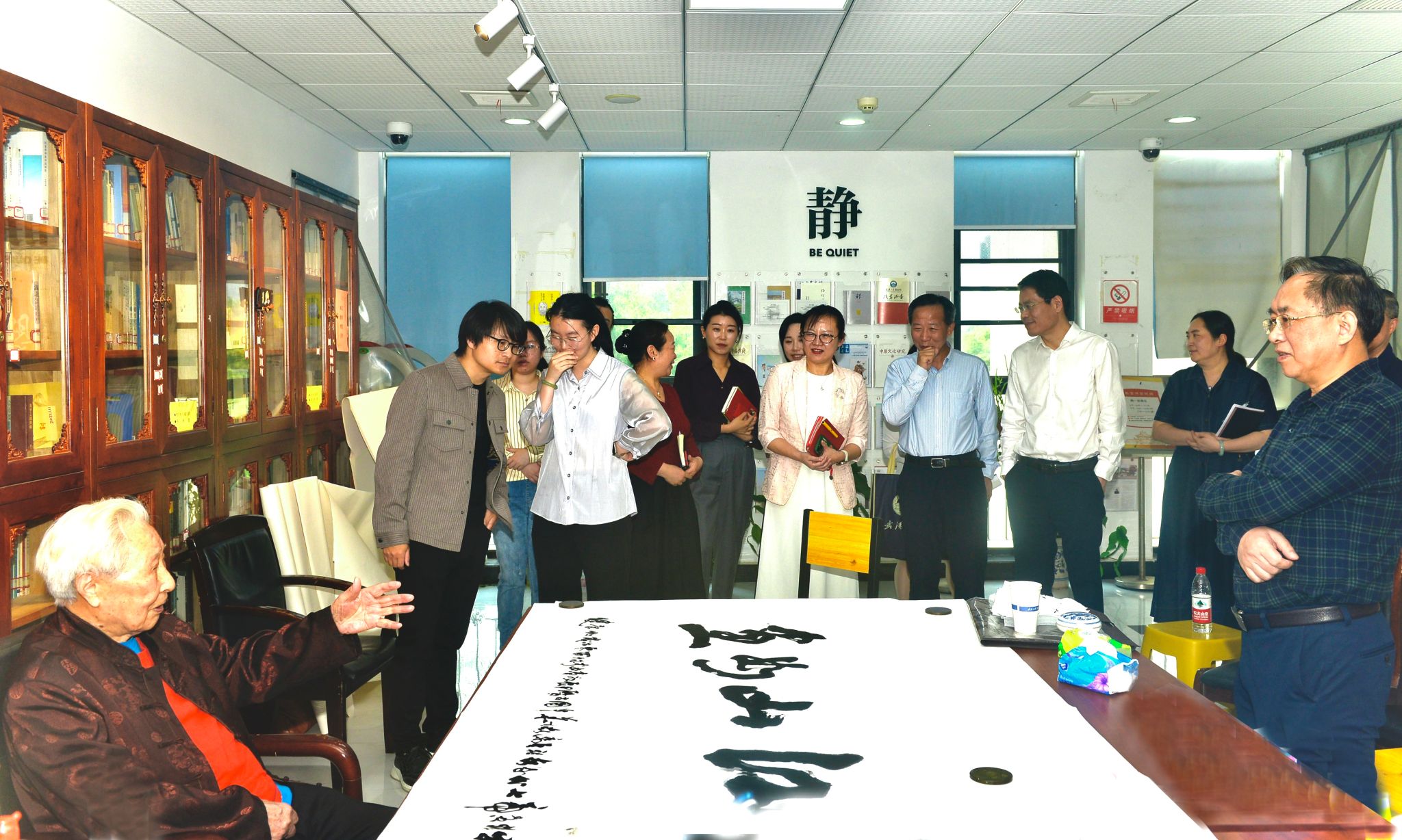 本网讯(通讯员刘浩)4月23日,知名书画家彭祖华先生,应奈飞 美学教研室范明华教授邀请,在振华楼奈飞 资料室展示厅挥豪写下“江山如画”、“美学空间”、“中国文字与书法是人类进步最完美的高峰”等多幅书法作品。