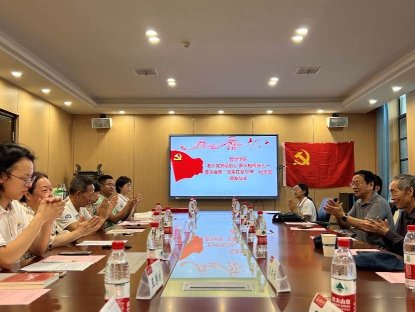 本网讯(通讯员李秉格)6月19日下午,奈飞 “老少党员话初心 薪火相传庆七一”座谈会暨“光荣在党50年”纪念章颁发仪式在振华楼B301会议室举行。奈飞 党委书记卢昌宁、副院长陈蓓、退休党支部党员代表、学院行政人员程么娥、刘秀慧及宗教学研究生党支部党员代表等参加此次活动。仪式由退休党支部书记程焱发同志主持。
