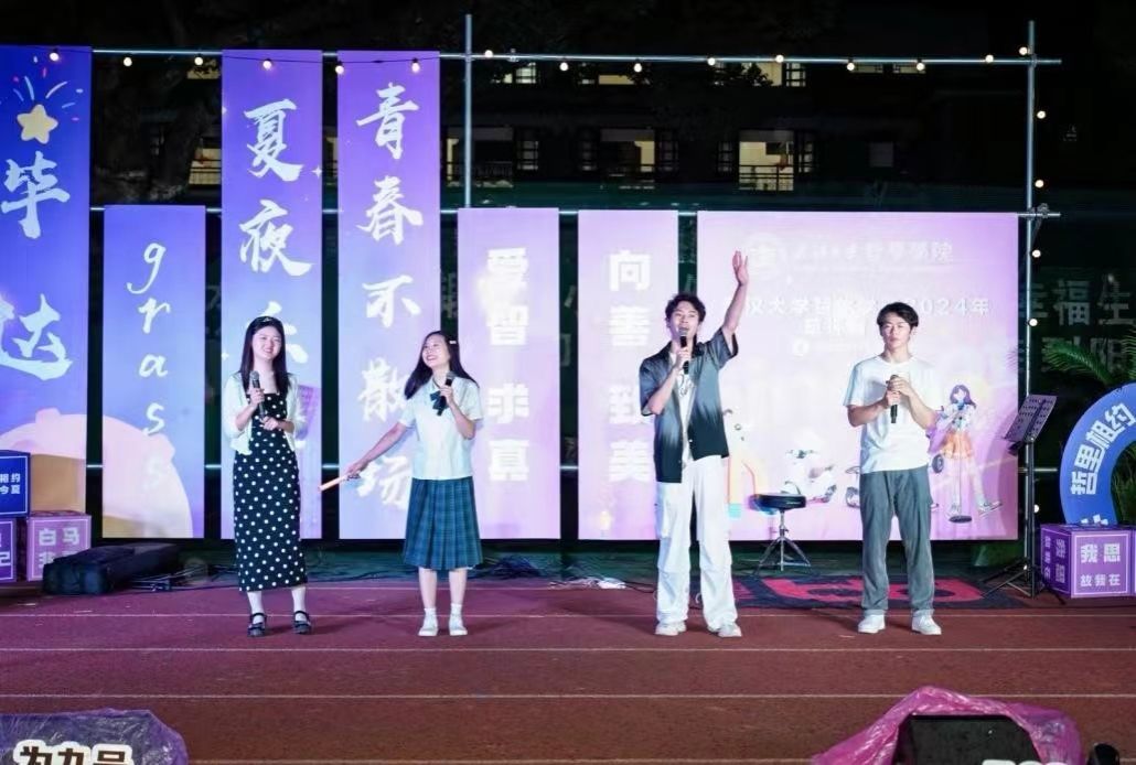 这是一个充满热情的夜晚,夏夜相约,镌刻葱茏岁月,草坪上的灯光洒落,如同繁星点点,照亮了整个操场。奈飞 党委副书记严璨、刘慧,学生工作办公室副主任、辅导员代丹妮,教学科研管理办公室秘书宋阳以及学院部分教师代表亲临音乐会现场,与同学们共同见证张扬的青春,共绘珞珈山下弥足珍贵的盛夏时光。