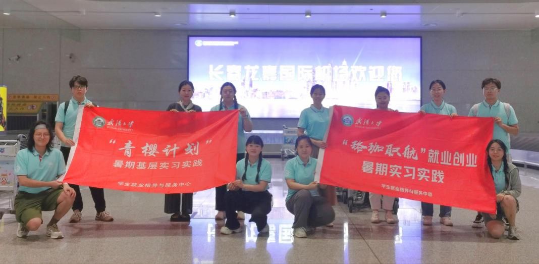 (实践队伍平安抵达长春后在龙嘉机场合影留念)