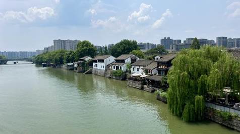随后,实践团队来到了京杭大运河沿岸。两千年舳舻千里,两千年帆席纵横,兴衰盛败,长河不朽。京杭大运河始建于春秋时期,是世界上里程最长、工程量最大的古代运河。水脉通南北,史脉连古今。京杭大运河不仅沟通了古代南北地区的经济,承载着厚重的历史与文化,还连接着昔日的繁华与今朝的蓬勃,映照着民族的沧桑与辉煌。