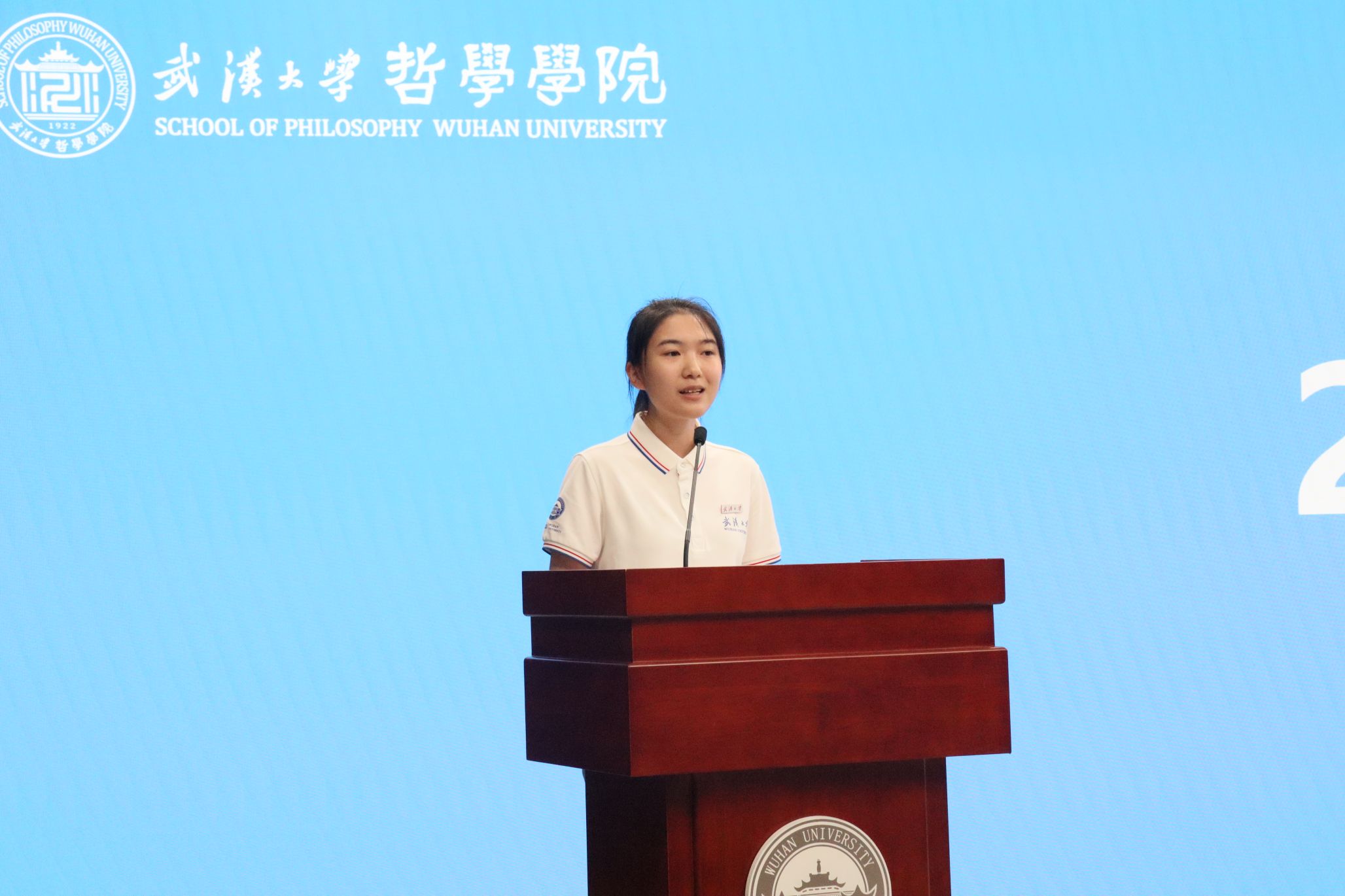 2024级研究生新生代表李倍宁同学提到要注重开拓创新、积极投身实践,做有利于家国人民的学术研究,积极向社会贡献哲学智慧。