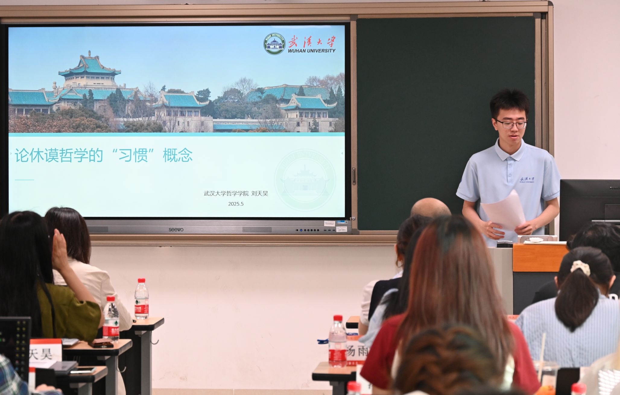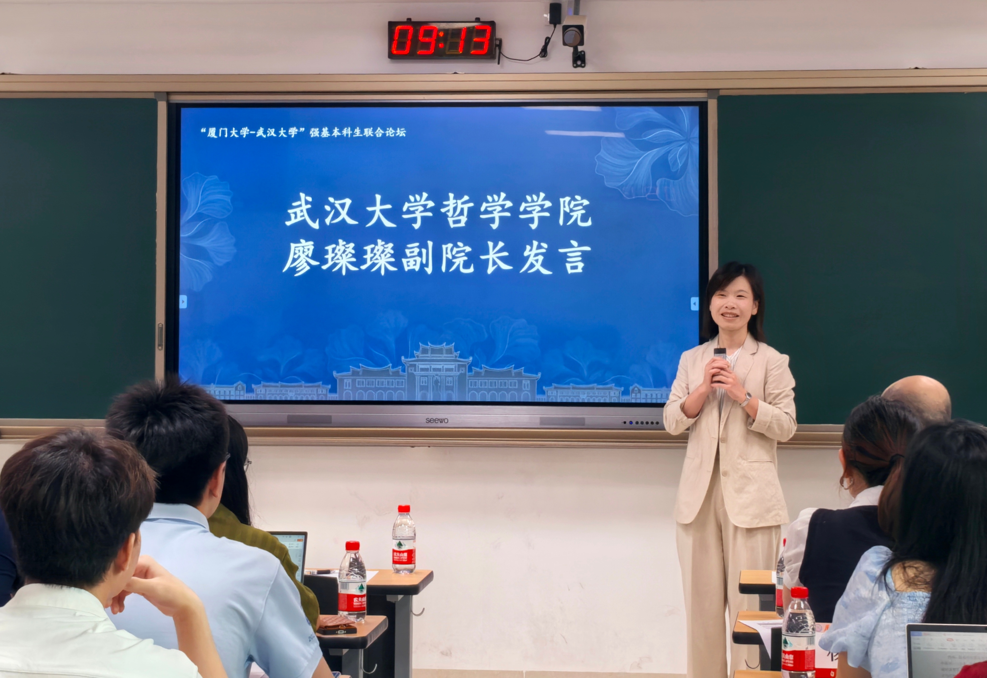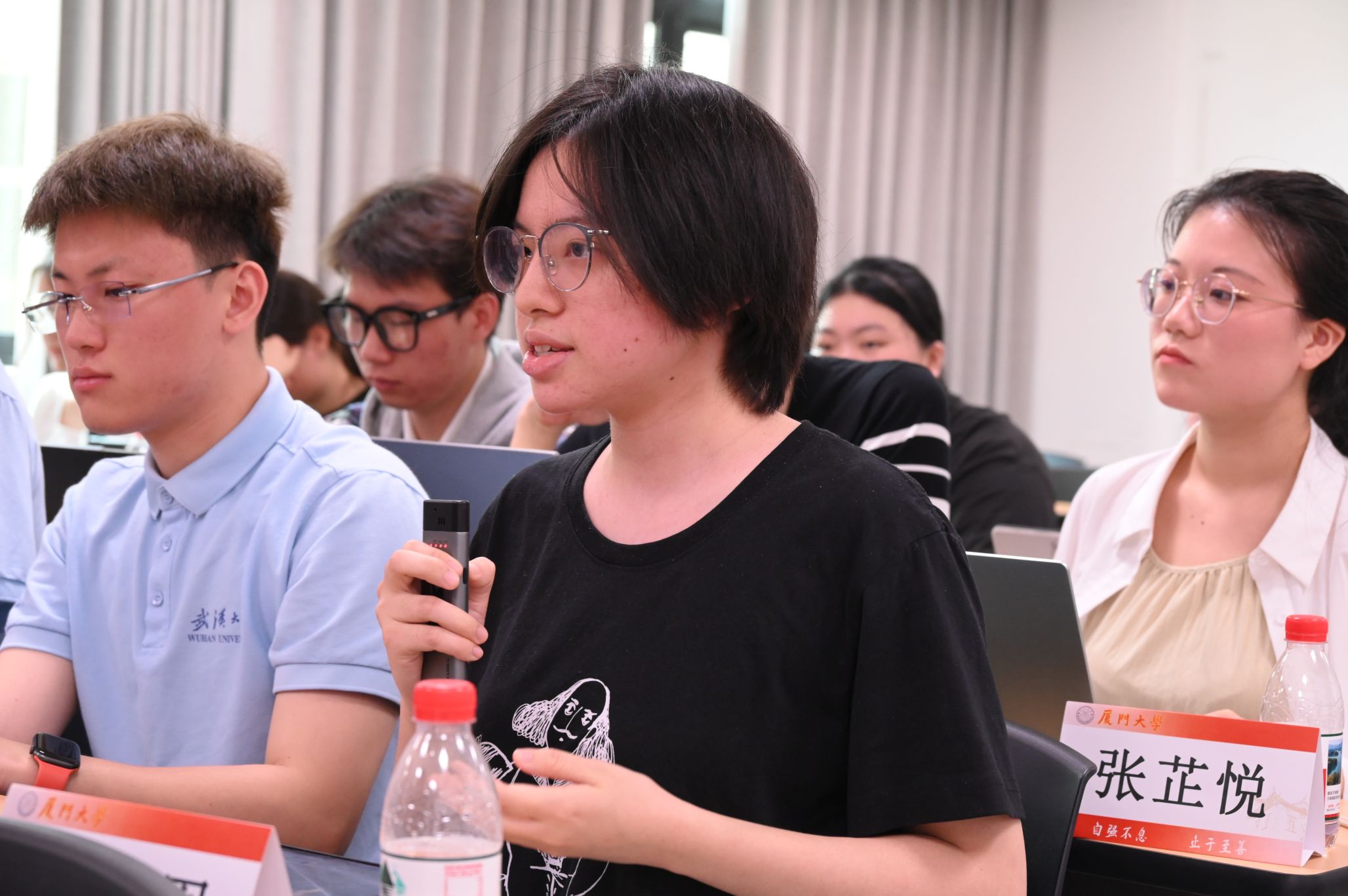 此次交流的核心环节是两校学生的学年论文互讲互评。作为新生,我们虽未直接参与汇报,但旁听学长姐们以哲学视角切入文学批评、科技伦理、美学现象等跨领域议题的讨论,深刻体会到哲学研究的现实关怀。厦大同学与武大同学对文本的阐释形成鲜明对话,让我意识到哲学研究既需要经典文本的深耕细作,更应直面现代社会的精神困境。尤其令我触动的是点评环节:双方师生以苏格拉底式的诘问推动思考深化,犀利而不失温情的学术交锋,展现出哲学人特有的理性克制与思想锋芒。这种“以问题为中心”的学术生态,启示我未来学习中既要筑牢形而上学根基,也要培养将抽象理论转化为现实解释力的能力。