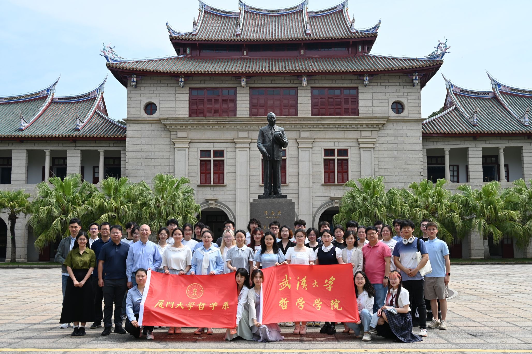 参观陈嘉庚纪念馆与集美学村,让我对“民族脊梁”有了具象化认知。陈嘉庚先生“倾资兴学”的壮举,不仅是教育救国的实践,更暗合儒家“修齐治平”的价值追求。当看到先生“企业可以收盘,学校绝不能停办”的手书时,我理解了《论语》中“士不可不弘毅”的现代回响——哲学研究同样需要这种超越功利的精神品格。而漫步于嘉庚建筑群,中西合璧的“穿西装戴斗笠”式建筑美学更给予我方法论启示:燕尾脊与罗马柱的共生,恰似哲学研究中本土传统与西方理论的互鉴,提醒我们在学术道路上既要保持文化主体性,又要具备开放的对话意识。