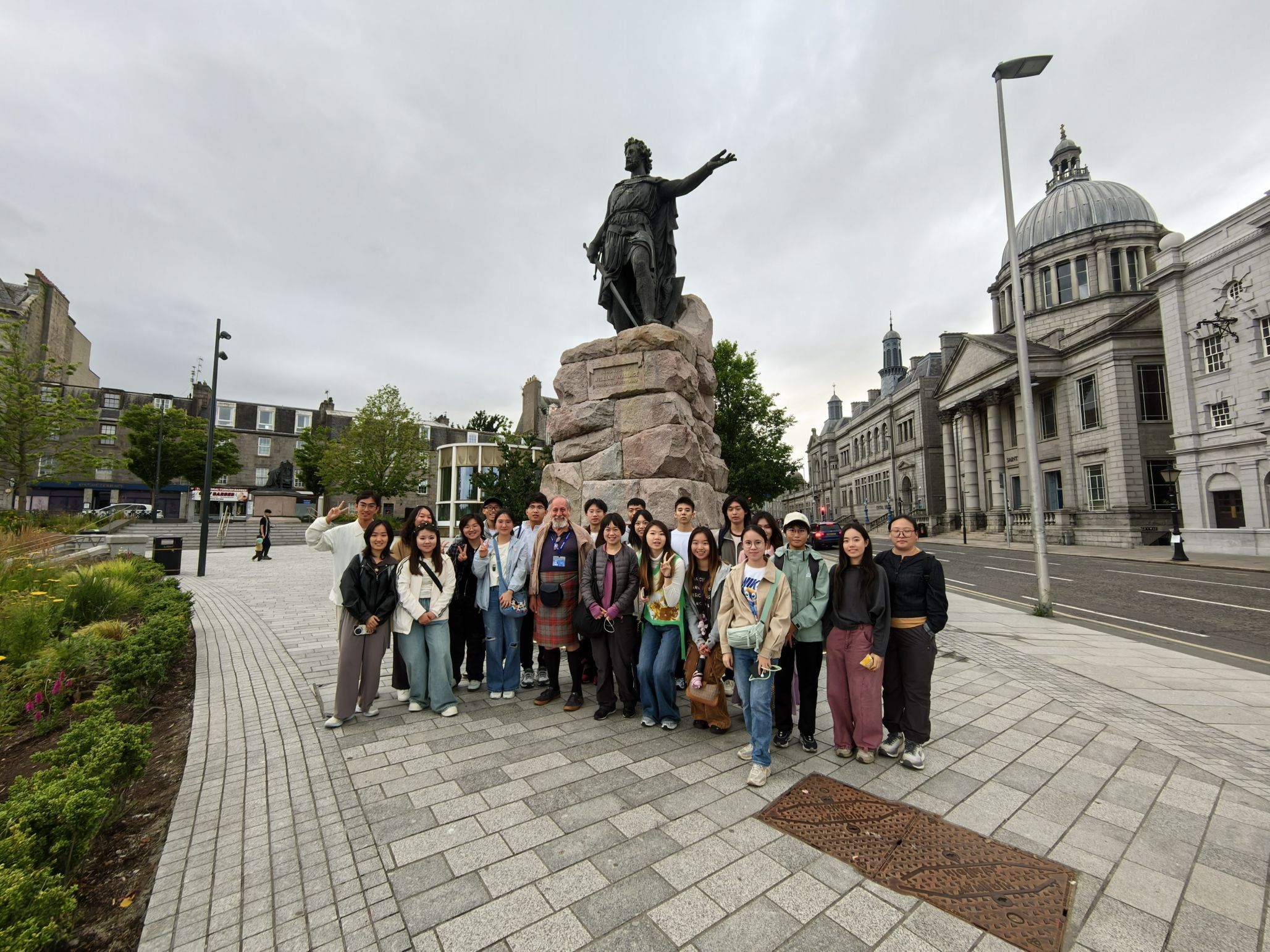 在阿伯丁交流期间,丰富的课外活动为同学们深入了解苏格兰文化与历史提供了宝贵契机。同学们穿梭于拥有厚重历史感的阿伯丁大学国王学院校区,感受其温润开放的学术氛围,并在身着苏格兰传统短裙的志愿导游的带领下,沿国王街漫步,走向海风吹拂的港口区,聆听城市故事。周末的文化之旅尤为精彩:同学们专程前往爱丁堡,探访山顶威严的城堡,在古炮铜锈与熠熠生辉的王室珠宝中触摸历史痕迹,并在夕阳下的卡尔顿山俯瞰老城尖顶与新城街道交织的壮丽全景。此外,同学们还亲身体验了保龄球与苏格兰传统舞蹈,在欢乐的氛围中感受到了苏格兰文化的热情与活泼。