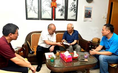 朱传棨老师表达了对学校和学院领导的感激之情,感谢学校领导、老师和同学们对他的关爱。他说,当前学校发展势头良好,“双一流”建设处于重要时期,人才强校工作取得显著成效,令人倍感振奋。“学校一如既往对老同志高度重视,在离退休工作体制和制度建设上做了大量工作,让我有前所未有的满足感和幸福感。”朱老师还拿出自己刚刚出版的书赠给窦校长,再次表达了自己的感激之情。