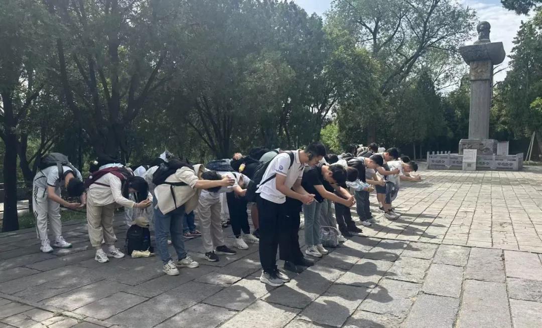 下午两点,通识研学队伍行至下一站——嵩阳书院。作为宋代四大书院之一,嵩阳书院是儒家理学的重要发祥地。学子们细观“明伦堂”“道统祠”的中轴线布局,体悟儒家“礼制秩序”在建筑空间中的具象呈现;驻足程颢、程颐讲学旧址,感受“格物致知”的理学方法论对中国传统教育的深远影响;轻抚唐槐宋柏的苍劲枝干,从历代碑刻文字中品读“为天地立心,为生民立命”的儒家担当。少林寺的“出世”禅意与嵩阳书院的“入世”儒风相映成趣,让学子在步履间深切领会中华文明“和而不同”的包容底蕴。
