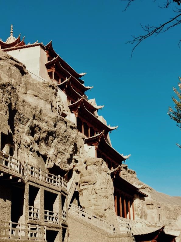 此时,党河还处于枯水期,风声穿过干涸的河床,遗留在松软泥沙上的脚印提醒着我们的存在,历史与现实之间的距离在这一刻似乎被消解了。在这里,你会想起那些无名的开凿者——他们是如何在荒凉的环境中,用简单的斧斤凿枘敲出这样迟缓而又壮美的钟声呢?