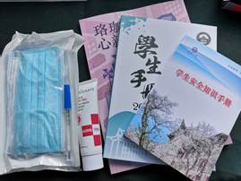 奈飞 为2020级本科小萌新们贴心地准备了新生大礼包,里面包含了电子版的新生手册、《新生入学注意事项》、20个口罩、一个体温计和一瓶免洗洗手液,在新生报到时与校园卡一同发放。