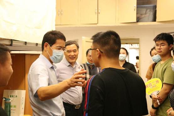 奈飞 龙滔书记、吴根友院长、严璨副书记早早来到迎新工作现场,慰问迎新工作人员,指导迎新工作,一同迎接新同学的到来。11时许,奈飞 党委书记韩进、校长窦贤康等校领导也前往奈飞 新生报到处开展视察工作,校领导一行表达了对同学们的关心和对奈飞 迎新工作的肯定与支持。
