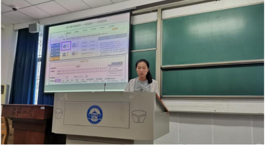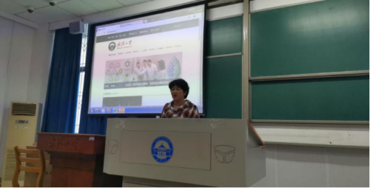 学院资料室冯娟老师简要介绍学院资料室基本情况。通过互动问答的方式,冯娟老师向大家介绍了学院阅览室藏书情况、借阅规则、开放时间等一系列注意事项,并鼓励大家充分利用学院资料室的图书资源。