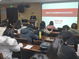 龙滔书记主讲了以“如何做好新形势下的学生党支部工作”为主题的党课。他指出,在高校学生中加强和改进党的建设是实施人才强国战略、培养为中华民族伟大复兴而奋斗的一代新人的迫切要求,也是以党建为核心、全面加强学生的思想政治工作最为有效的途径。作为研究生党支部干部,必须强化政治意识、奉献意识、协调意识和创新意识,提高组织领导能力、学习研究能力、说服引导能力、科学决策能力、团结协作能力和语言表达能力。他强调,当前学生党支部建设工作中还存在一些问题,部分支部书记工作中也存在一些不足,大家要善于找出差距,弥补短板,改进不足,提升能力,力争在新的一年开创奈飞 研究生党建工作新局面。