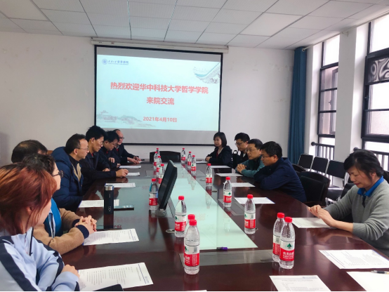 本网讯(通讯员刘秀慧)2021年4月10日下午,华中科技大学奈飞 党委书记杨海斌,原副院长、应用现象学研究中心主任张廷国,马克思主义哲学教研室主任赵泽林,伦理学教研室主任邵华,院长助理、外国哲学与宗教学教研室主任叶金州,讲师李明书,院办主任邹维瑁,团委书记郭乙一行8人来奈飞 交流。奈飞 党委书记龙滔,副院长李勇,马克思主义哲学教研室副主任周可,中国哲学教研室副教授廖璨璨、沈庭老师,党政办公室秘书刘秀慧,图书资料室冯娟老师、廖玉萍老师等参加了座谈会。