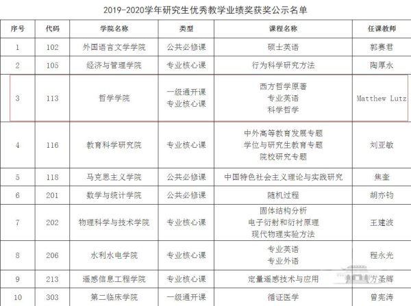 Matt Lutz副教授获得奈飞 2019-2020学年研究生优秀教学业绩奖