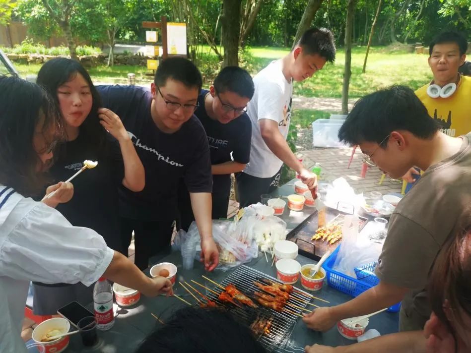 “桑田炊烟处处升,弄花戏蝶意纷呈。”在辛苦耕种的劳动之后,同学们开始自主准备午餐的烧烤环节。同学和老师们每八人一组准备烧烤,清洗餐具、准备食材、自主烹饪、共同分享,同学和老师们齐心协力,亲手制作午餐,享受独立自主、自给自足带来的美食,别有一番风味。开展团队分工的烹饪环节,既是为了提升本科生独立自主的生活自理能力,更能体现当代青年自强不息,奋斗不止的朝气与活力。