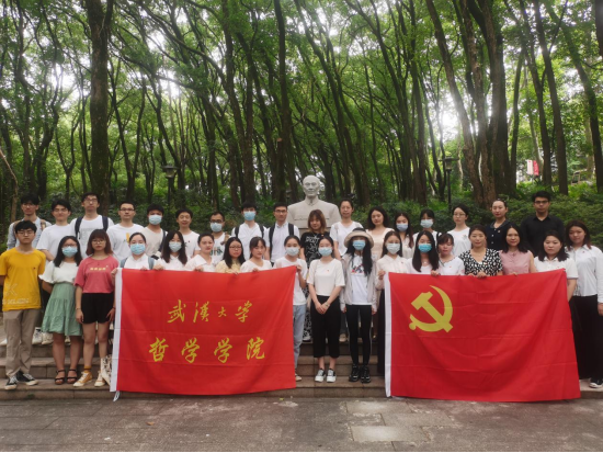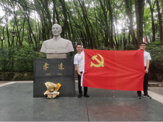 最后是宣誓环节。由马克思主义哲学硕士生党支部书记杨小叶同志领誓,其他所有同志面向党旗和李达老校长雕像庄严宣誓。一句句誓词,铿锵有力,在场的同志都回想起入党时的初心,更加坚定了共产主义的理想信念,在建党百年后的新征程中,在“两个一百年”奋斗目标里,继续书写属于国家民族和自己的未来使命。