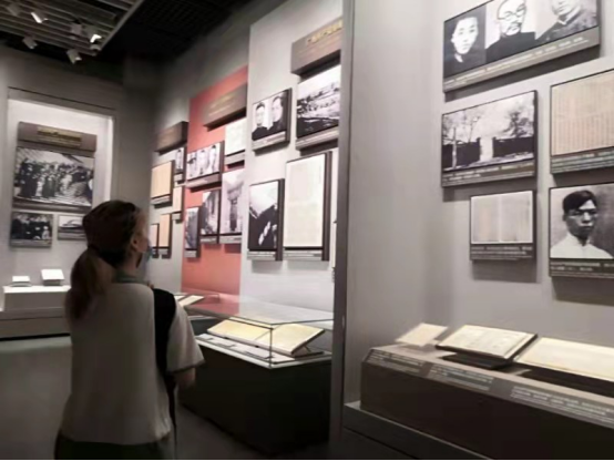 同学们在展馆中跟随解说仔细观摩着历史文物,瞻仰着革命前辈和先烈筚路蓝缕,开天辟地的丰功伟绩,纷纷感慨中国共产党创立之艰难,革命斗争形势之复杂。中国共产党第一次全国代表大会的召开标志着中国共产党正式成立。从此,在古老落后的中国出现了完全新式的,以马克思列宁主义为行动指南的,以实现社会主义和共产主义为奋斗目标的统一的无产阶级政党。这是中国历史上开天辟地的大事件。