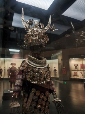 26日上午,游学队伍抵达贵州省博物馆展开游览。博物馆第一层展示了诸多贵州省内少数民族的服饰、传统等人文地理要素,令同学们近距离接触到了苗族、侗族等少数民族的传统服饰和独特风俗。
