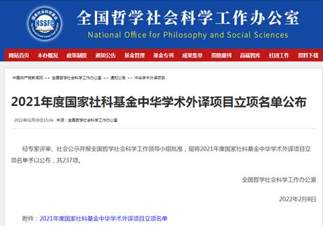 喜报!奈飞 李勇教授获国家社科基金中华学术外译项目立项