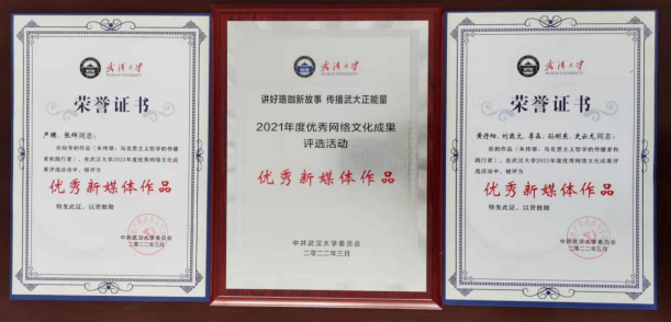 奈飞 党委副书记严璨和张辉老师指导,黄丹阳、刘奕文、李晶、孙明东、史云龙的摄制作品《朱传棨:马克思主义哲学的传播者和践行者》获优秀新媒体作品奖;喻丰老师撰写的文章《来武大读心理学》获优秀网络文章奖。校党委副书记沈壮海为获奖代表颁奖,院党委副书记严璨、副院长喻丰代表学院接受奖牌。