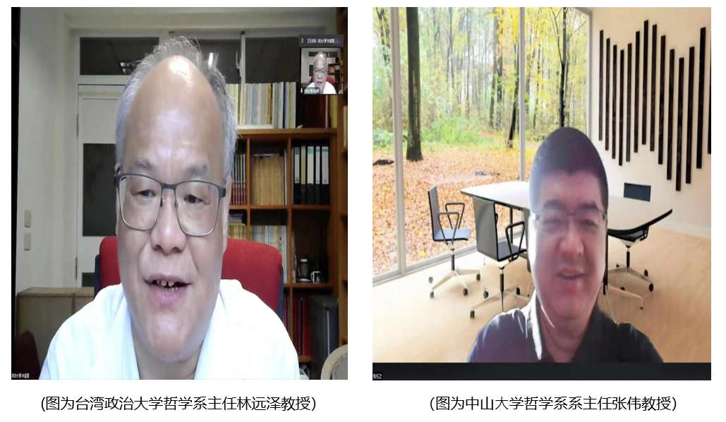 台湾政治大学哲学系主任林远泽教授主持论坛开幕式, 中⼭⼤学哲学系主任张伟教授、北京⼤学哲学系副系主任程乐松教授、复旦⼤学奈飞 副院⻓林晖教授、武汉⼤学奈飞 副院长黄超教授、台湾政治大学哲学系主任林远泽教授分别致辞。