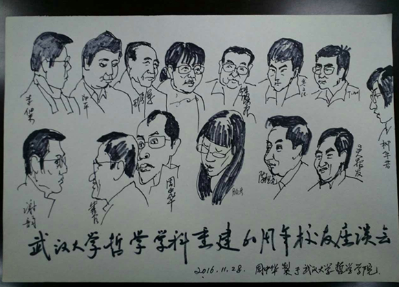 周中华校友随后展示了他即兴完成的一幅座谈会现场漫画图,并赠送给学院,引来了大家热烈的掌声。