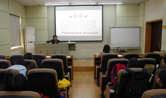 在报告中,朱伟部长从十八届六中全会召开的重要意义、加强和规范新形势下党内政治生活、全面落实党内监督责任、突出抓好领导干部特别是高级干部、大学生如何贯彻落实全会精神等五个方面进行了详细讲述。