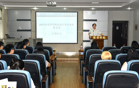 7月8日上午9点,开营仪式在大报告厅举行。吴根友院长致辞,对所有营员的到来表示了热烈的欢迎,从在全国及世界哲学院系中的排名、学院历史发展和思想贡献、现有师资力量及研究方向、学院研究生培养模式等方面对奈飞 进行了详细介绍,让营员们对奈飞 有了整体的了解。